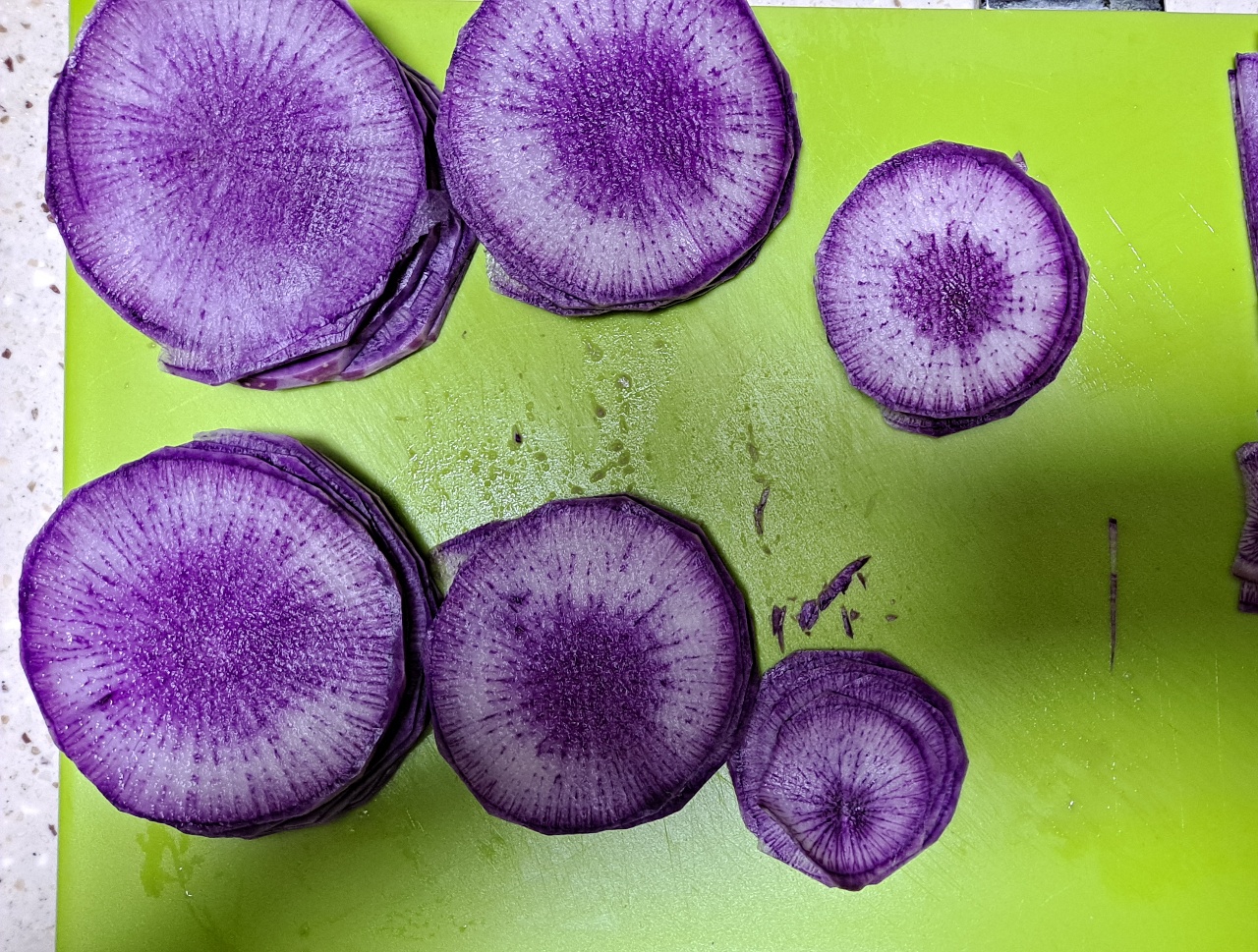 1.자색무는 그대로 쓰고, 흰무는 순나오는 쪽의 녹색부분만 활용했습니다.